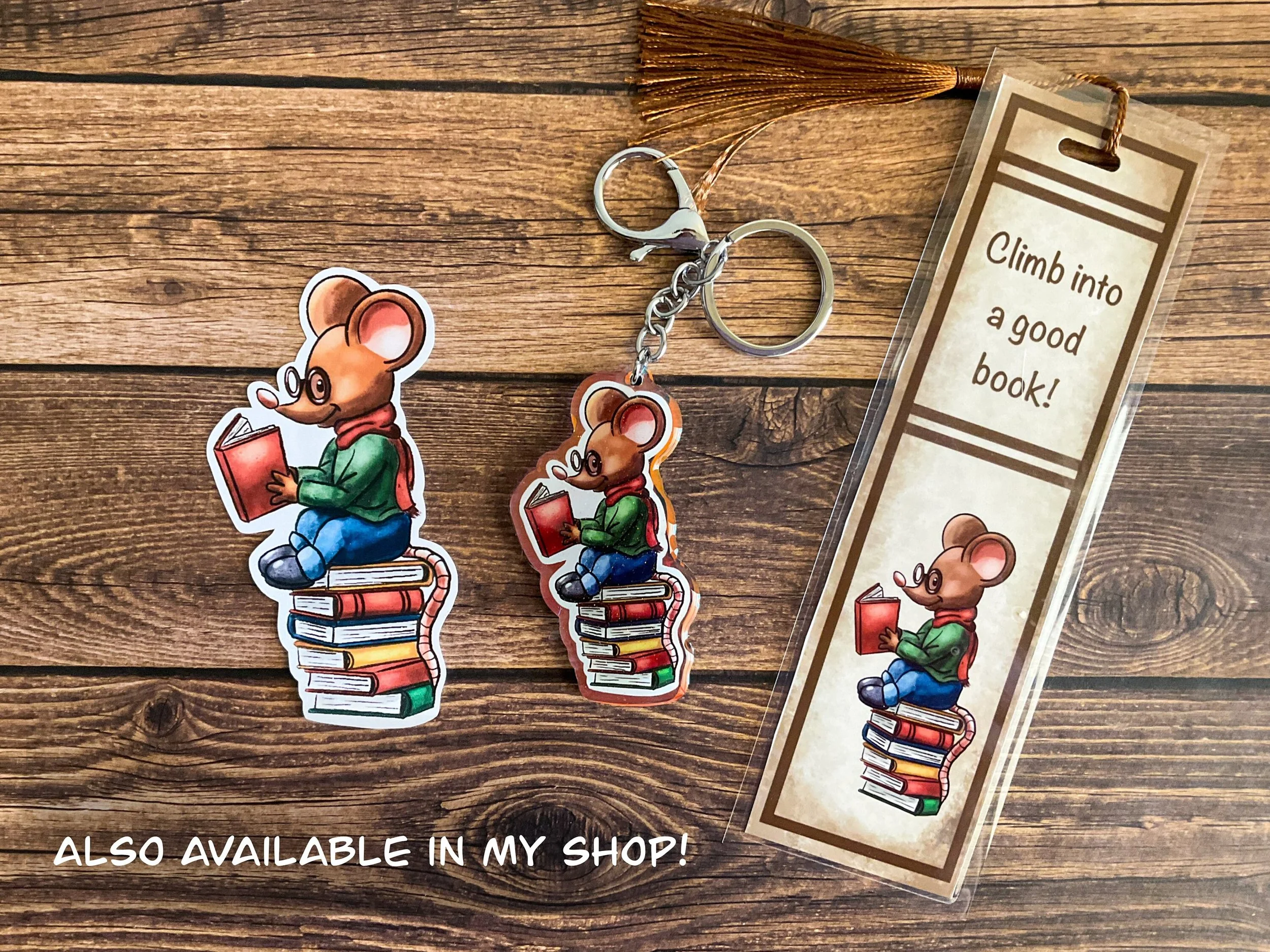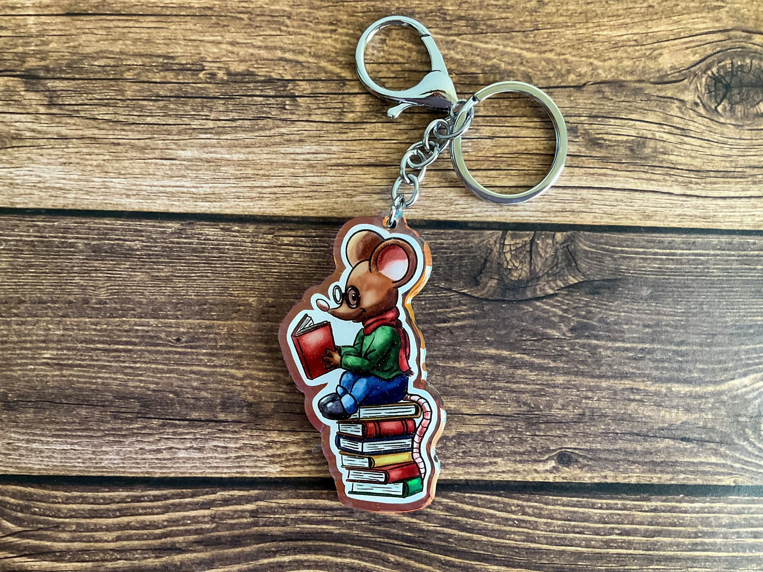Bookish Mouse Acrylic Keychain: Sparkly Reader Gift