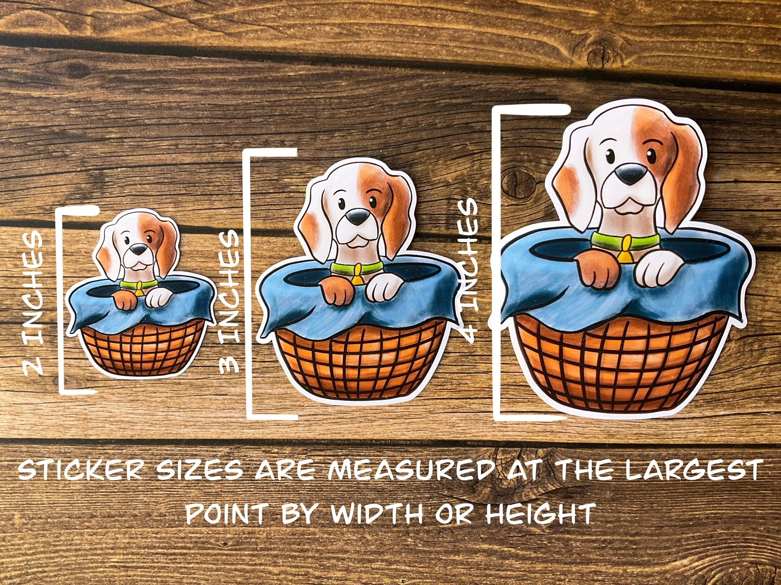All sizes are measured from the largest part of the sticker either vertically or horizontally.