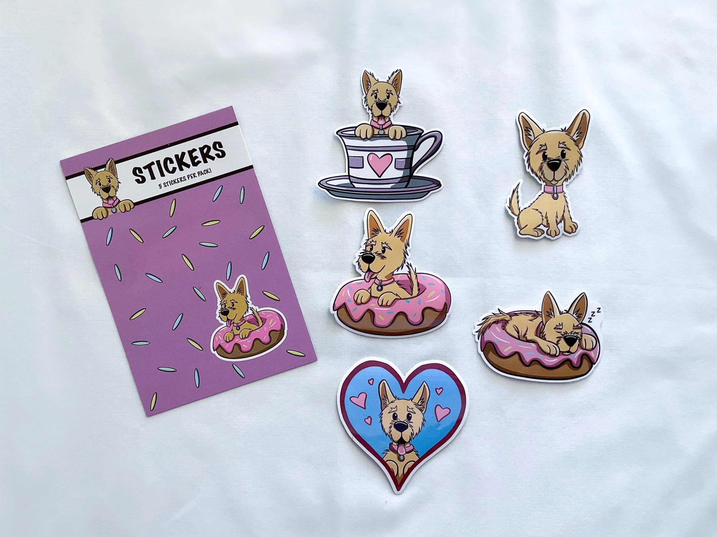 This adorable puppy sticker pack makes the perfect gift for dog lovers of all ages! There are five different stickers in every pack of this scruffy little terrier who loves nothing more than naps and sweet dreams. I have two options available--Glossy and Holographic. The glossy stickers feature a 3mm thick durable laminate while the holographic layer provides some extra sparkle.