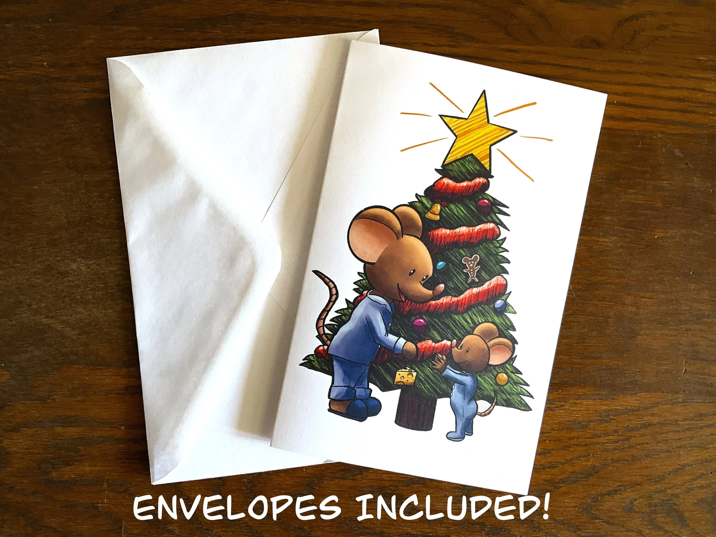 These illustrated Christmas cards all feature deer who are ready for Christmas. From the new young deer who wants to join Santa's recruits, all the way up to Rudolph himself, these cards are great for Christmas! They are the perfect card to put a smile on a child's face—or a child at heart! Deer lovers and Christmas enthusiasts alike will love these cards!